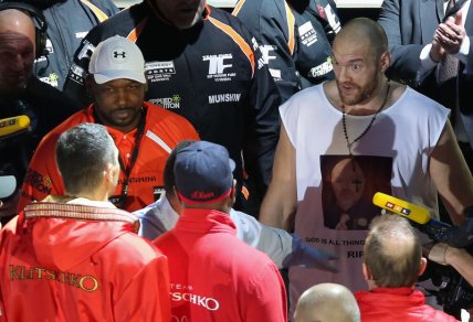 На зважуванні Тайсон Ф’юрі показав на терезах 112 кг, а Кличко виявився лише на 500 грамів легшим — його вага становила 111,5 кг.