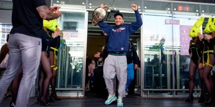 Чемпіона в аеропорту Бориспіль зустріли друзі, рідні, журналісти та команда Parimatch.