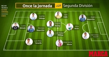 20-річний голкіпер «Ов'єдо» і збірної України Андрій Лунін, чий контракт належить мадридському «Реалу», включений до збірної 27-го туру іспанської Сегунди за версією авторитетного видання Marca.