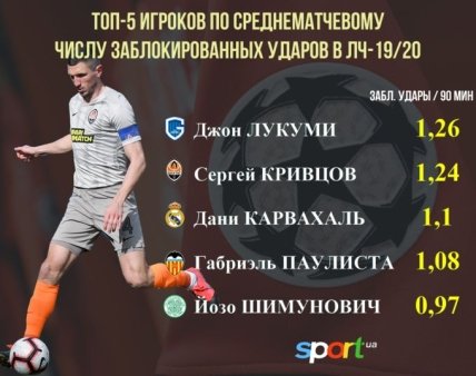 Центральний захисник «Шахтаря» Сергій Кривцов станом на сьогоднішній день входить в топ-5 гравців Ліги чемпіонів-2019/20, за кількістю заблокованих ударів. Про це повідомляє Sport.ua згідно даних Wyscout.