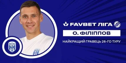За підсумками 26-го туру чемпіонату України найкращим гравцем визнано нападника «Десни» Олександра Філіппова. Форвард відзначився дублем у матчі з «Олександрією» (5:1).
