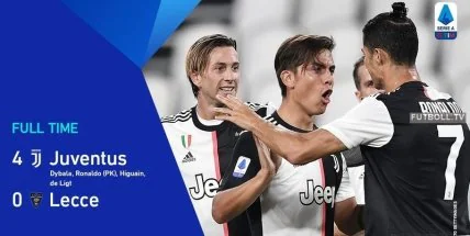 До вашої уваги відео огляд матчу 28-го туру італійської Серії А, в якому Ювентус не залишив шансів Лечче. Суперник вистояв в першому таймі, але залишився в меншості. А після перерви пропустив чотири рази. Найкращий гол забив Пауло Дібала – аргентинець, якому асистував Роналду, поклав м’яч в дев’ятку. Португалець сам відзначився з пенальті та допоміг забити Ігуаїну. Крапку в розгромі поставив Де Лігт. Тож Ювентус відірвався від Лаціо вже на сім очок, хоча римляни в цьому турі зіграють з Фіорентиною.