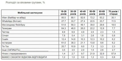 За допомогою Viber листується 73,6% учасників опитування. Варто зазначити, що його використання переважає серед усіх вікових категорій українців. Найбільше цей месенджер подобається людям від 30 до 39 років (85,5% респондентів).