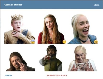 Стікери створені спеціально для шанувальників "Гри престолів". Тут зібрані всі колоритні персонажі серіалу.