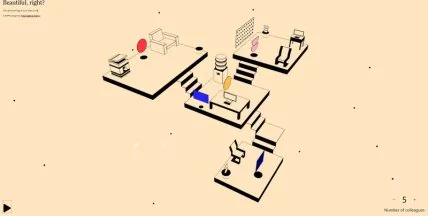 Сайт проекту представлений у вигляді карти офісу, де є робочі місця, принтер, кулер і колеги, які ходять туди-сюди. Користувач сам вибирає, які звуки хоче чути: тупіт, чиєсь плямкання, стукіт клавіатури, скрип стільця або телефонні дзвінки.