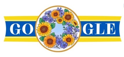 Сьогоднішній Doodle якась інтерпретація національного прапора України. На тлі синьо-жовтого фону зображений вінок з квітами - жовтими соняшниками і синіми волошками. Вінок в назві грає роль однієї з букв "О" в слові "Google".