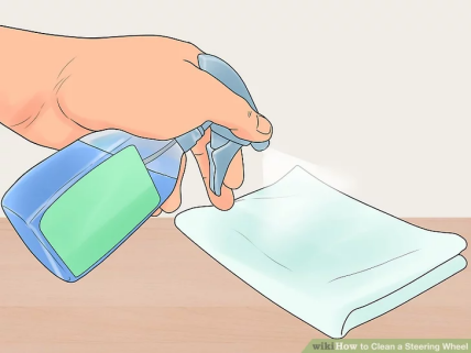 Розпилювати очисний засіб безпосередньо на кермо – не найкраща ідея. Так можна залишити плями на панелі приладів. Використовуйте рушник з мікрофібри. Розпилюйте свій засіб для чищення у центр рушника, поки він не стане вологим.