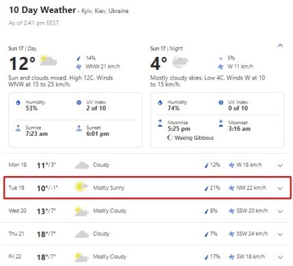 Більше того, після 21 жовтня температура повітря місцями сягатиме 18-19 градусів тепла. У їх числі Київська, Харківська, Львівська, Запорізька та Дніпропетровська області.
