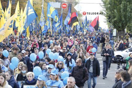 У Києві в четвер, 14 жовтня, пройшов Марш захисників України, який зібрав ветеранів війни в Донбасі, українських націоналістів та понад п’ять тисяч громадян. На марші були присутні представники ВО "Свобода", "Національного корпусу" і "Правого сектора" разом з їх лідерами.