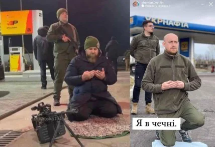 Це фото є натяком на знімок Кадирова, який той нібито зробив, перебуваючи в Україні. Втім, його тоді видало те, що на фоні була заправка "Роснафти", яких у нашій країні немає.