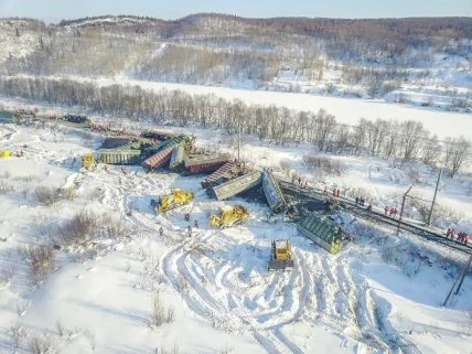 Це одна з найбільших аварій РЖД в останні роки. 20 вагонів 8-тонного вантажного поїзда зійшли з рейок, 14 з них перекинулись. Окрім того було пошкоджено 300 метрів залізничних шляхів і 3 прольоти контактних ліній.
