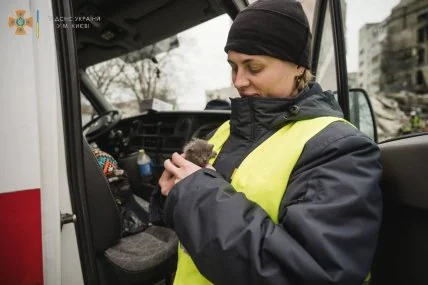 В одній із зруйнованих багатоповерхівок було знайдено маленьке та дуже гучне кошеня, яке всіма силами трималося на життя, повідомляє ДСНС України у телеграм.