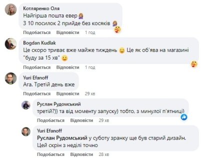 Користувачі мережі також написали кілька зауважень до роботи сервісів "Укрпошти". Дехто пожалівся, що є суттєві недоліки з доставкою посилок, а хтось пожартував, що напис на сайті оператора нагадує табличку на магазинах "Буду через 15 хвилин", однак без позначення точного часу. Частина громадян зазначила, що сервіс з продажу марок на сайті не працює як мінімум з неділі, 24 квітня.