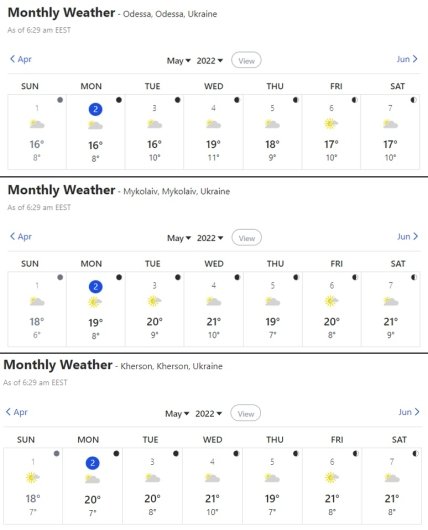 Південні області — Херсон, Одеса, Миколаїв — порадують теплом до 21 градуса Цельсія, але не сонцем, часто буде хмарно цього тижня.