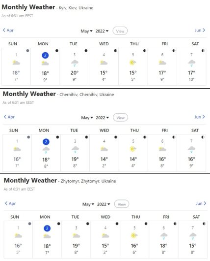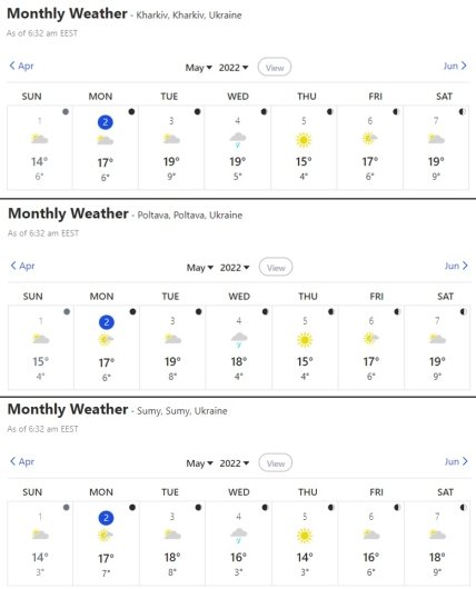 Початок травня 2022 року ознаменується в Україні досить теплою погодою та переходом у дощі з грозами та незначним похолоданням.