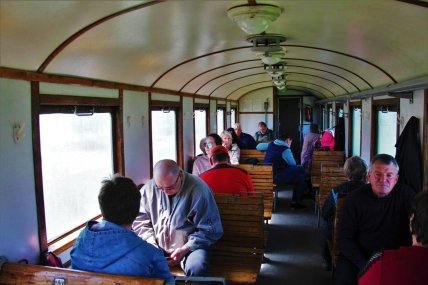 На першому рейсі для журналістів та активістів залізничного руху курсували два раритетних пасажирські вагони Pafawag та паротяг Гр-280.