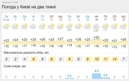 Щодо столиці України, то в Києві очікується стабільна тепла погода з хмарністю. Грози прогнозують лише кілька разів, одна з них – 16 червня. Тоді ж температура підніметься до +32.