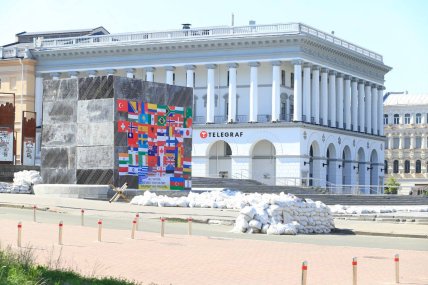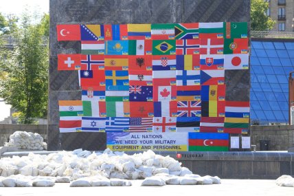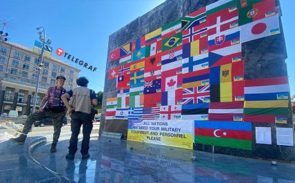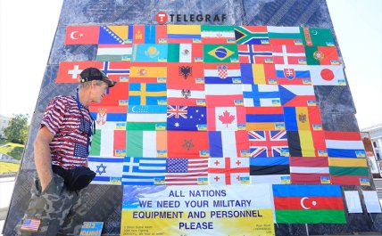 У центрі Києва іноземець влаштував акцію на підтримку України та ЗСУ. На Майдані Незалежності чоловік вивісив прапори 53-х країн, громадяни яких воюють в Україні проти російських окупантів.