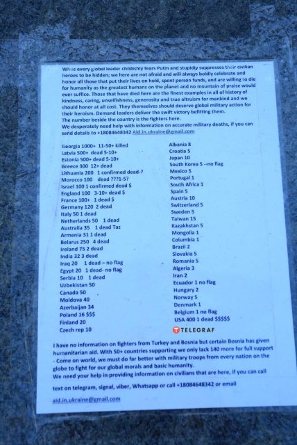 Нам потрібні тисячі, тисячі і тисячі людей, які рука об руку стоятимуть за українською армією, щоб перемогти у цій війні. Ми не можемо дозволити цьому тривати 10 років. Нам треба закінчити цю справу протягом місяців, а не років. І нам потрібно, щоб люди з усього світу могли приїхали сюди та допомогли нам".