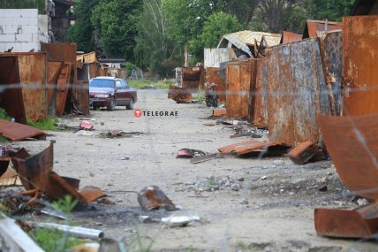 Поруч із такою мирною картиною мовчазними свідками нещодавнього жахливого минулого стоять обгорілі й зруйновані багатоповерхівки. Приватні двори з продірявленими кулями парканами та написом російських окупантів нагадують про недавні бойові дії.