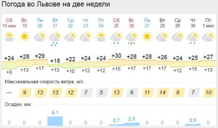 На заході України температура повітря підійматиметься до понеділка, проте у вівторок, 21 червня, стовпчик термометра різко піде вниз. Ймовірно, виною цього будуть значні опади. Ще одне, але не таке помітне, похолодання відбудеться ближче до кінця місяця.
