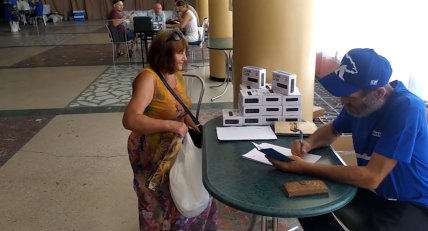 В окупованому Херсоні "волонтери" від керівної російської партії "єдина росія" влаштували роздачу місцевим жителям телевізійних тюнерів, які дозволяють дивитися російські канали.
