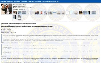 Куницький знаходиться в базі сайту "Миротворець" за такими позиціями: