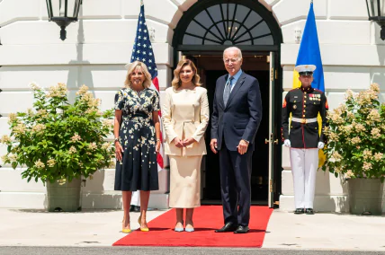 Перша леді України Олена Зеленська перебуває з візитом у США, в рамках якого відбувся її візит-відповідь до дружини американського президента Джилл Байден. Доктор Байден таємно приїздила до України на початку травня – тоді перші леді зустрілись в Ужгороді і поспілкувались із переселенцями зі східних областей.