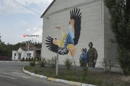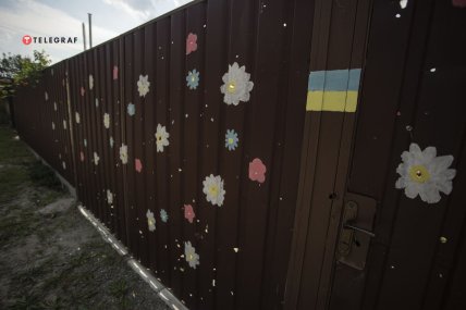 На парканах сліди від куль розмалювали квітами. У зруйнованих дворах спілкуються мешканці, а у центрі працює пункт роздачі гуманітарної допомоги.