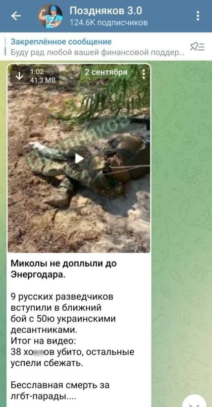 Днями в мережі з’явилося відео, на якому чоловік позиціонує себе, як російський розвідник іде узбережжям і показує "тіла вбитих українських військових". У тому числі воно розлетілося і великими пропагандистськими телеграм-каналами.