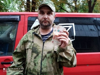 "Пішов час платити за орендовану квартиру, та й сильно простиг треба ліки купувати", — йдеться у підписі до фото, на якому бойовик тримає в руках 10 тисяч рублів (трохи більш як 6 тисяч гривень).
