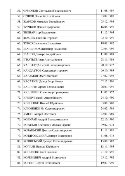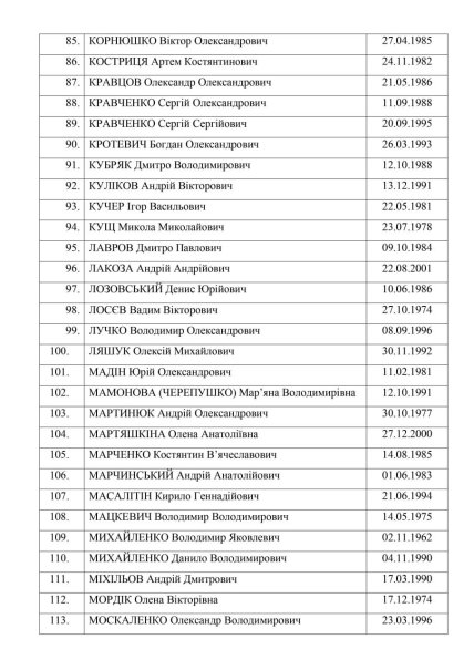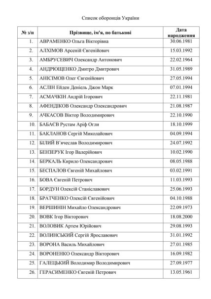 Далі наведено повний перелік українських захисників, звільнених від полону.