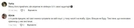 Про те, що це була спроба пожартувати, заявив нібито сам Іван Богдан у коментарях до цього ж відео у TikTok. Свої слова чоловік спробував виправдати тим, що знає скільки грошей витрачає на книги його дружина.