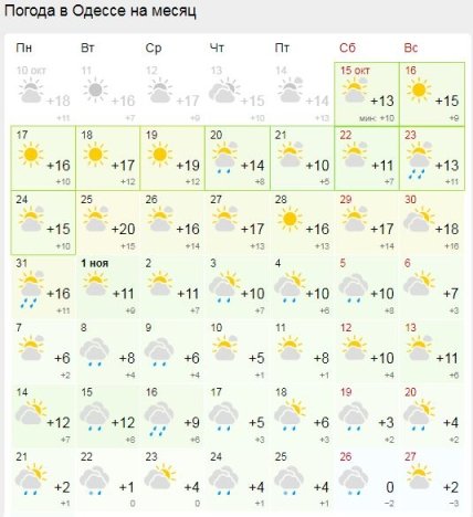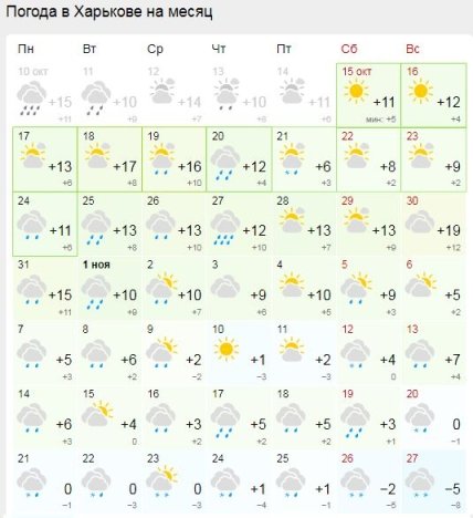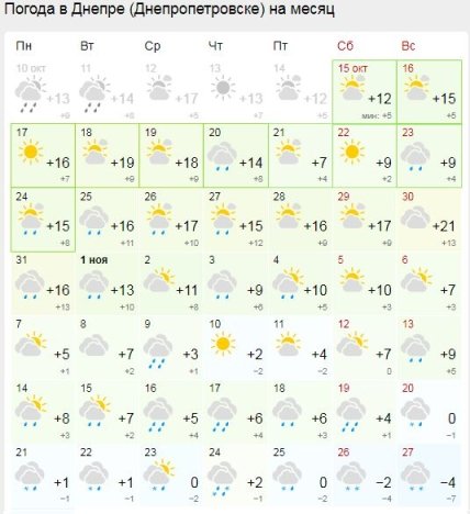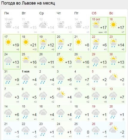 Як йдеться у прогнозі Гісметео, у середині наступного тижня варто чекати на похолодання, яке може навіть принести до низки областей мокрий сніг. Однак після цього відносно теплі дні повернуться, а подекуди до кінця місяця варто чекати навіть до +20 градусів. А ось листопад для більшості українців буде сирим та хмарним.