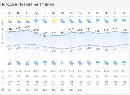 У середу-четвер збільшиться хмарність, очікується похолодання. Зокрема, у столиці 19-20 жовтня слід чекати дощу та похолодання.