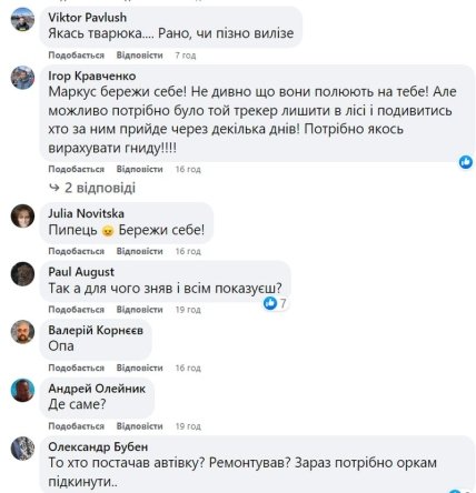 "Бережіть себе і бригаду", "Будь обережний! Зраджують свої", "Бережіть себе, у вас дуже багато роботи", "Десь поруч щури, завелися зрадники", "Будь обережний, погляд май як у орла, все примічай, ти нам потрібний живим», — радять українці військовому-волонтеру.