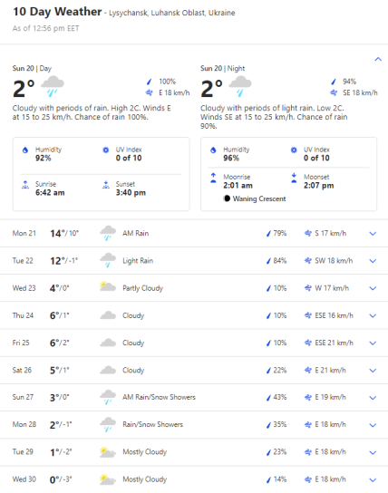 За даними weather.com, до кінця місяця обстановка на фронті поступово погіршуватиметься, варто чекати хмарної погоди, опадів і неухильного зниження температури.