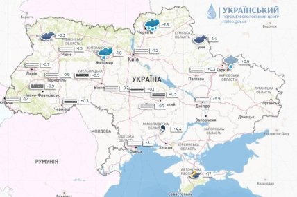 "Температура повітря неймовірна у своїх контрастах. На заході та півночі від -2 до +2, у центральних областях +8+14 градусів (у Вінницькій області близько нуля), у східних областях +10…+18 градусів, на півдні +15… +20 градусів! Можливий у понеділок мокрий сніг та крижаний дощ", — прогнозує фахівець.