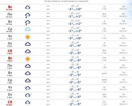 Надалі невеликі мінуси протримаються у столичному регіоні протягом першої декади грудня – такий прогноз дає ресурс "Ну й погода".