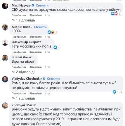 "Він/Вони будуть відслідковувати запит суспільства, пам’ятаючи при цьому, що саме їхній стеб над термосом приніс їм подяку та голоси москвовіруючих у 2019. І втратити цей електорат їм буде дуже важко", "Моя мачуха голосувала за Зеленського, бо Порошенко хотів закрити її церкву. Тепер трохи розчарується і в Зеленському", — висловлюють такі користувачі свою думку.