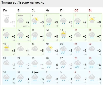 Як говориться в прогнозах Gismeteo і Meteoprog, січень у нашій країні буде досить хаотичним з періодами різких похолодань і потеплінь, а лютий стане стабільнішим з легкими холодами на початку місяця та потеплінням ближче до початку календарної весни.