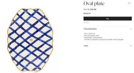 Що стосується іншого приладу поміченого на столі у заступника керівника ОП Тимошенка, то він є трохи дешевшим. Ціна на цю тарілку ручної роботи на сайті Gunia вказана 90 доларів (або 3600 гривень).