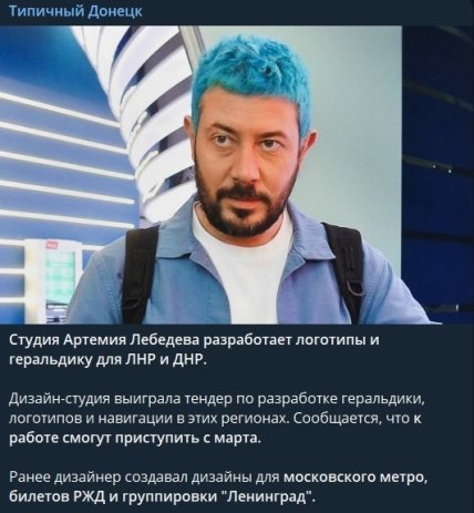 Російський дизайнер, пропагандист та блогер Артемій Лебедєв розробить логотипи та геральдику для бойовиків "ЛНР" та "ДНР". Його студія дизайн виграла тендер.