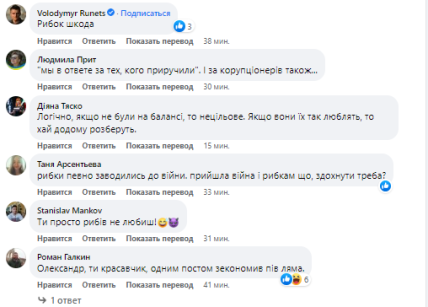 "І є питання. Якщо рибки не на балансі, то їх годування – це не цільове витрачання коштів?", — Підсумував свою посаду Рудоманов.