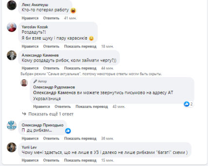 Рибок в "УЗ" вирішили роздати в добрі руки