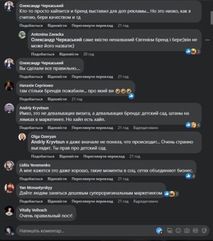 Питання етичності таких мемів вирішив порушити відомий український бізнесмен і блогер Євген Черняк. У себе на сторінці у фейсбуці він ініціював чимале обговорення, чи правильно те, як роблять українські бренди. Зокрема, враховуючи контекст приїзду Байдена — війна з рф: