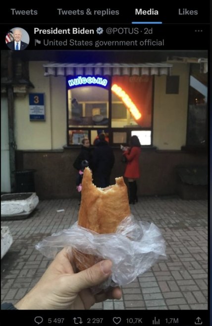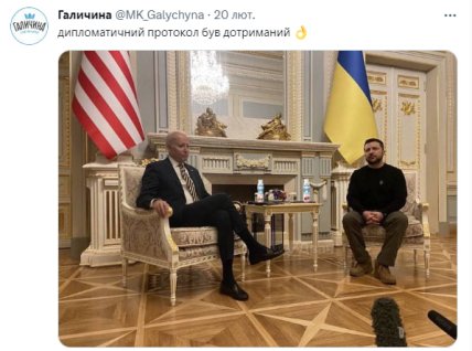 У день приїзду президента США до України мережа вибухнула мемами. Джо Байдена розташовували у різноманітних місцях і ситуаціях місцевого життя. Таким чином він "побував" чи не у всіх українських закладах, які мають свого СММника.