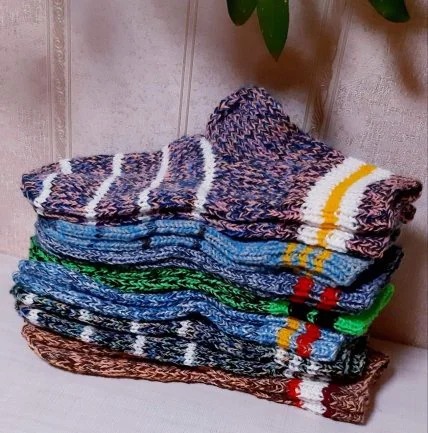 Сьогодні понад 20 таких незвичайних шкарпеток від пані Марії зігрівають ноги поранених захисників. Першу партію жителька Переяславщини надіслала в Суми. Передала такі вироби й в дніпровську лікарню.