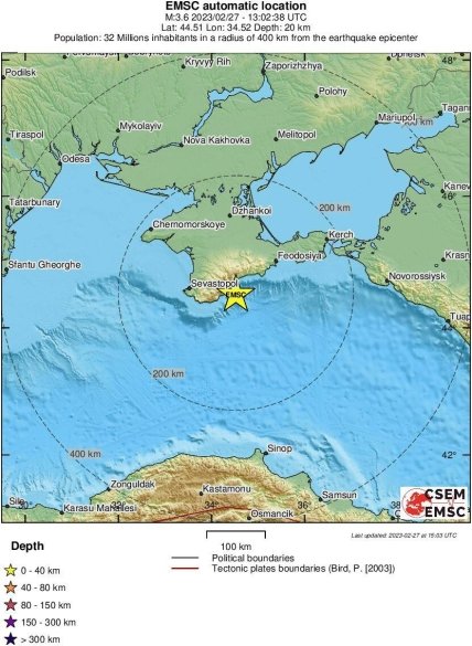 Підземні поштовхи були зафіксовані близько 15:25 за київським часом в акваторії Чорного моря на відстані 25 км від берега. Землетрус до 3 балів в епіцентрі стався на глибині 15 км. Мешканці півострова відчули ледь помітні поштовхи, інформації про руйнування чи постраждалих немає.