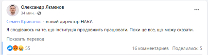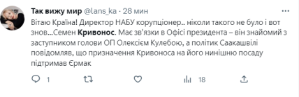 Раніше політик Михайло Саакашвілі зазначав, що кандидатуру Семена Кривоноса підтримали в Офісі президента, а саме його голова Андрій Єрмак. Водночас у мережі почали з’являтися такі коментарі: